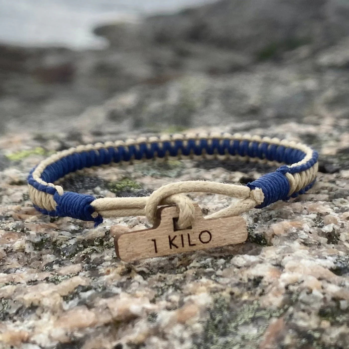 - The bracelet is handmade with GOTS certified cotton cord, and the locking mechanism is made of recycled FSC wood.