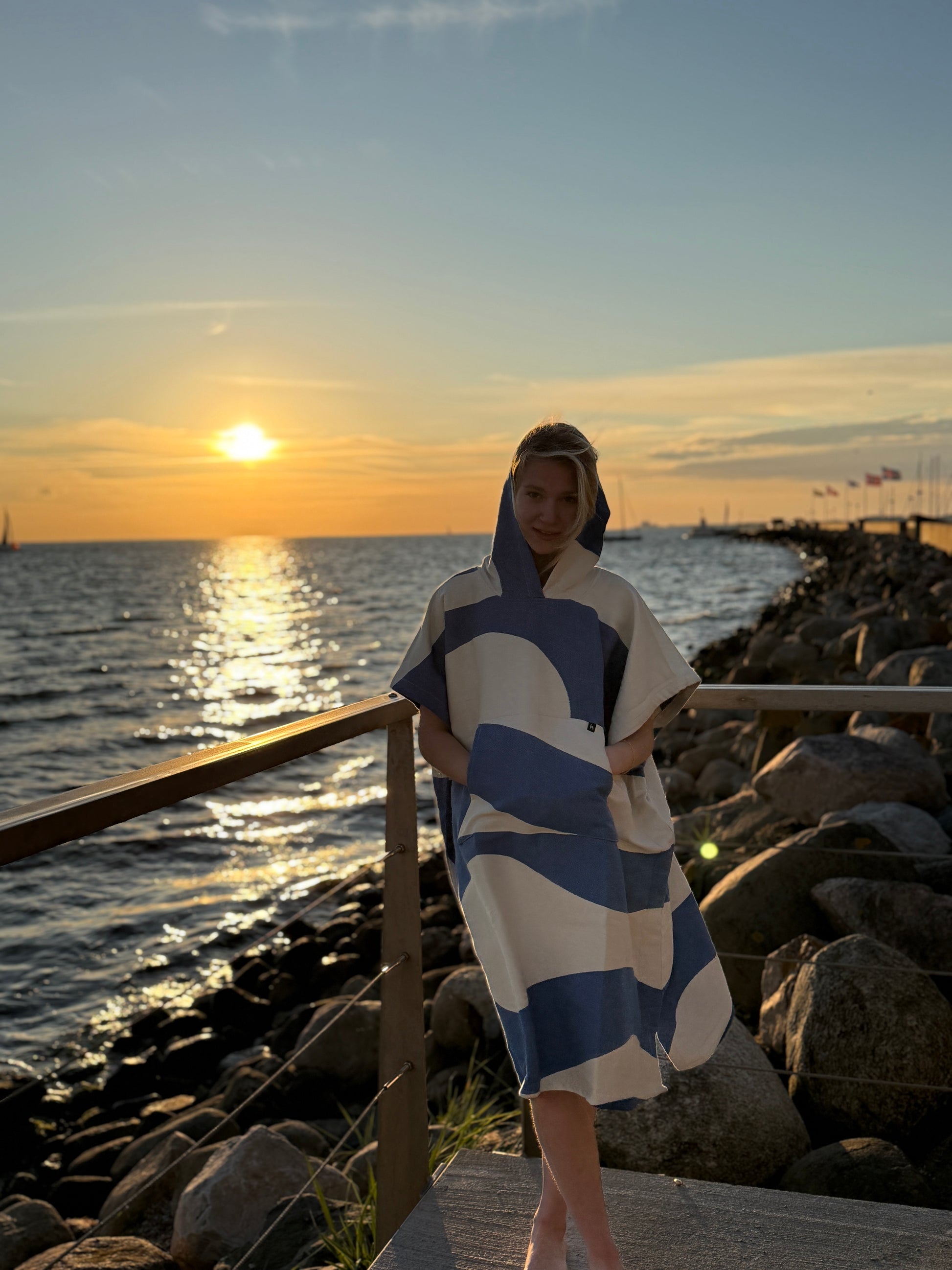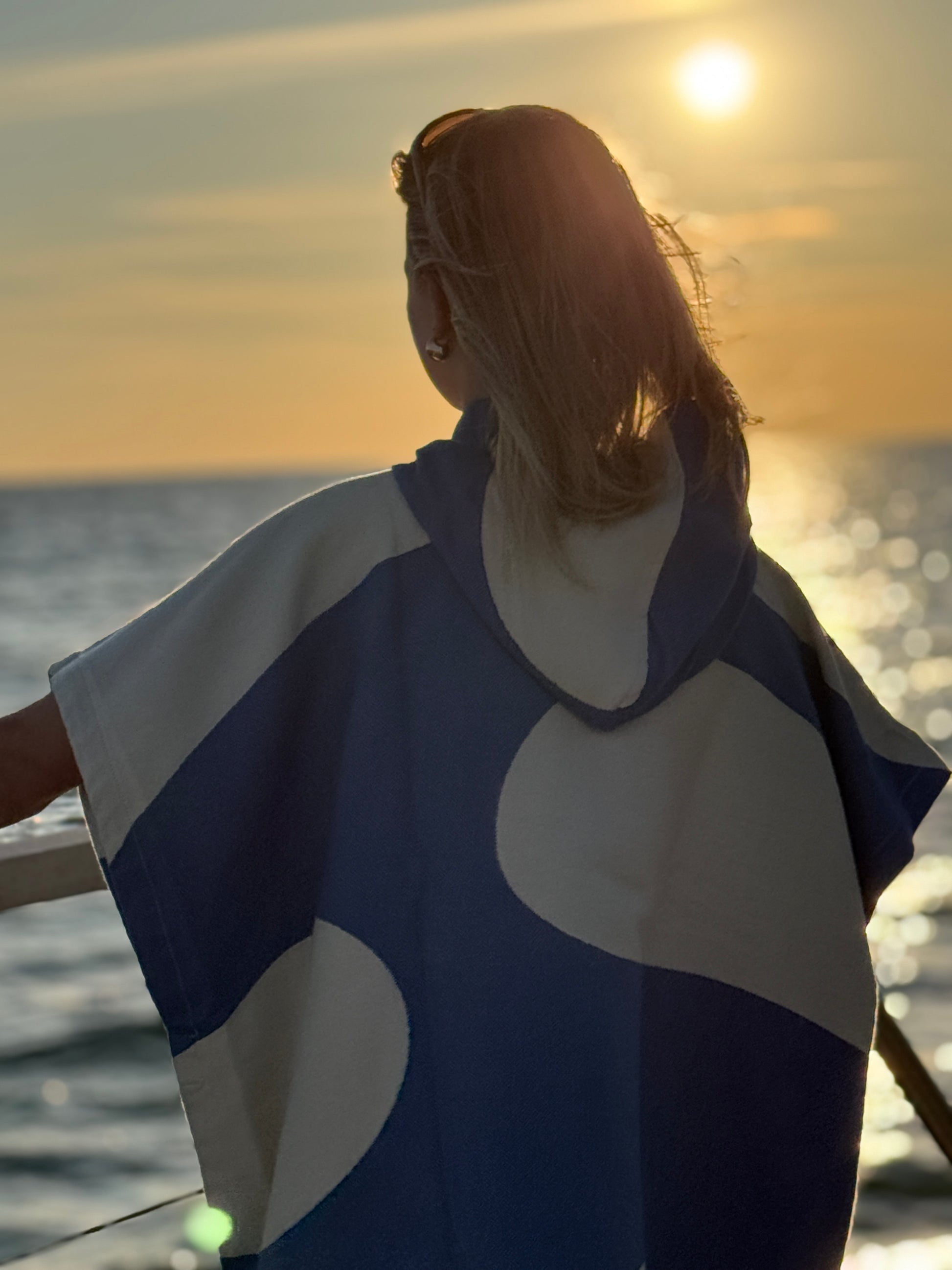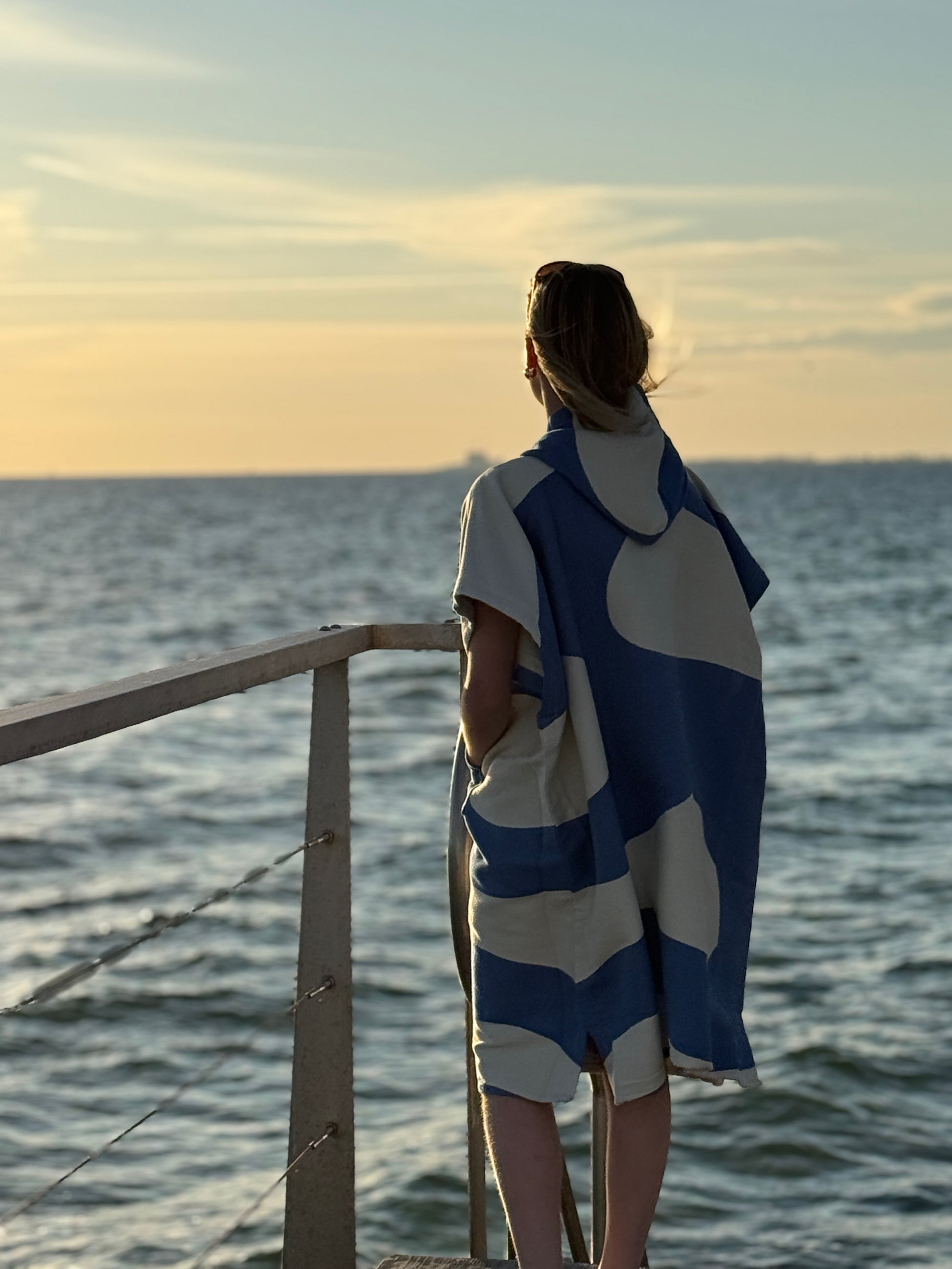 Bath Poncho Aether Blue is a colorful, double-woven poncho full of energy and softness. It is woven in two layers, which gives it a slightly thicker and extra comfortable feel against the skin - perfect after a dip in the sea or a day in the sun. The color is clear, vibrant blue with an expressive pattern.