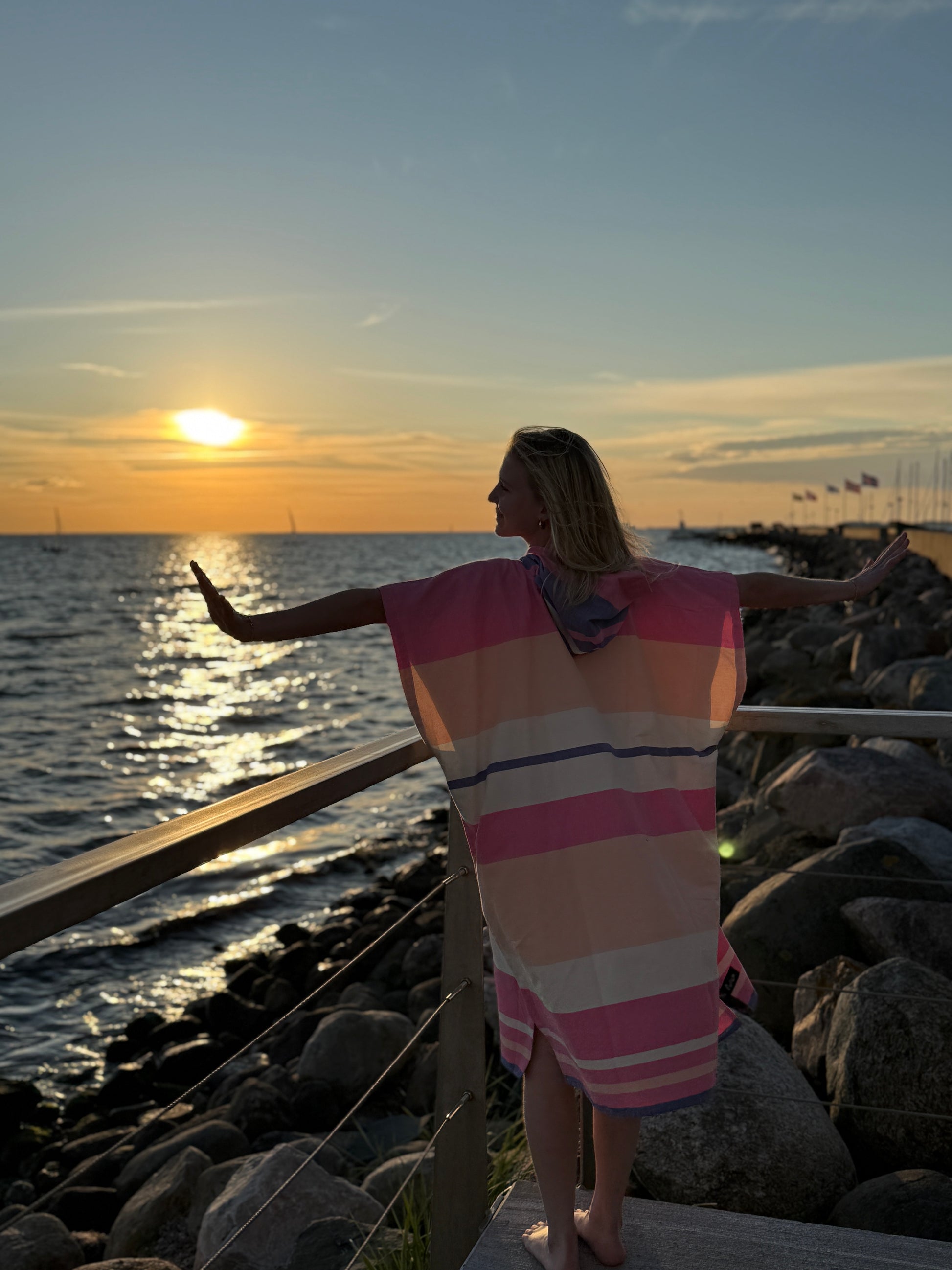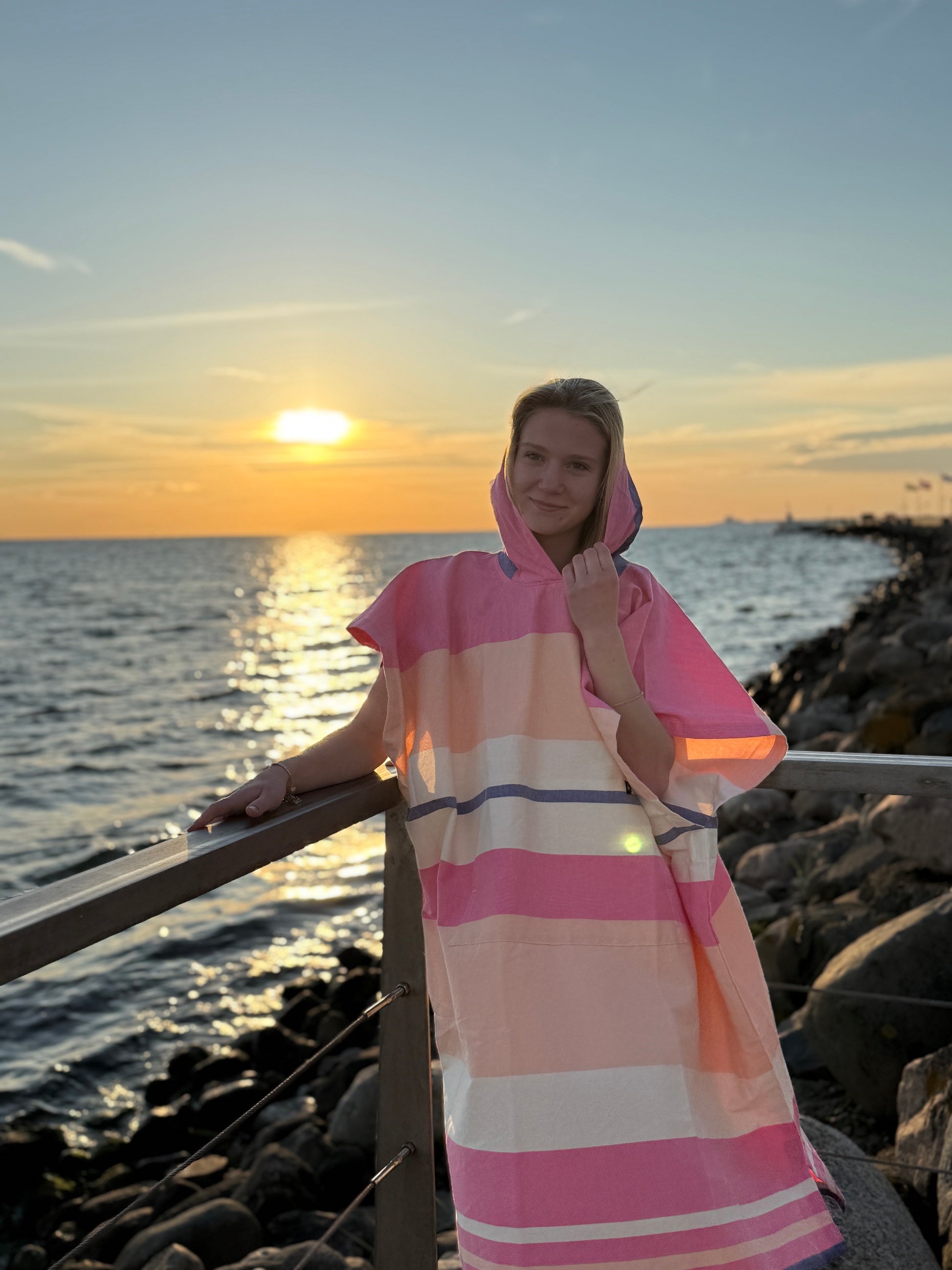 dponcho Papua Pink combines function and color in a soft and practical poncho that is perfect for the beach, boat trip or garden. The soft pink tones are mixed with creamy shades for a relaxed yet playful summer look.