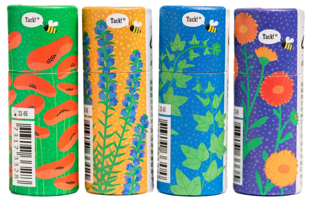 - Beeswax - Naturally moisturizing, antibacterial and forms a protective film that allows the skin to breathe. (Swedish and organic)