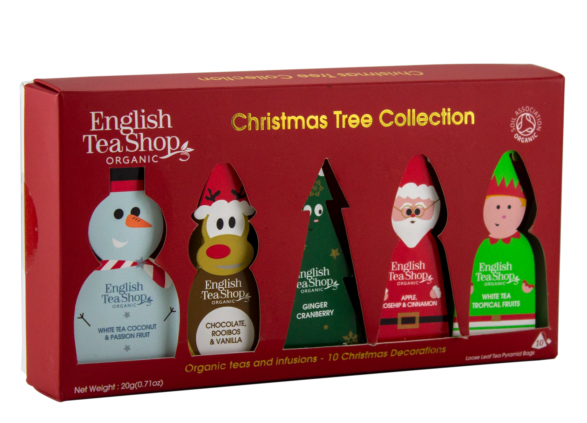 Ginger & Cranberry Ingredients: Black tea* (69%), cinnamon* (12%), ginger* (6%), natural flavouring (5%), cloves* (3%), ginseng* (3%), Cranberry* (2%). Brewing time: 4-5 min. Chocolate, rooibos & vanilla Ingredients: Rooibos* (88.5%), crushed cocoa beans* (6%), natural aroma (5%), vanilla bean* (0.5%). Brewing time: 5 min. Apple, rosehip & cinnamon Ingredients: Hibiscus* (47%), rosehip* (36%), apple* (5%), cinnamon* (5%), natural aroma (5%), peppermint* (2%). Brewing time: 3-5 min. White tea coconut & passion Ingredients: White tea* (62%), lemongrass* (14%), cocoa* (8%), ginger* (6%), natural flavouring (5%), passion fruit flower* (3%), coconut* ( 2%). Brewing time: 2-3 min. White tea & tropical fruit Ingredients: White tea* (59%), lemongrass* (21%), peppermint* (7%), hibiscus* (7%), natural aroma (5%), pieces of mango* (0.5%), pieces of the thorn annonas (0.5%). Brewing time: 2-3 min. *Organic ingredient. Store in a cool, dry place.
