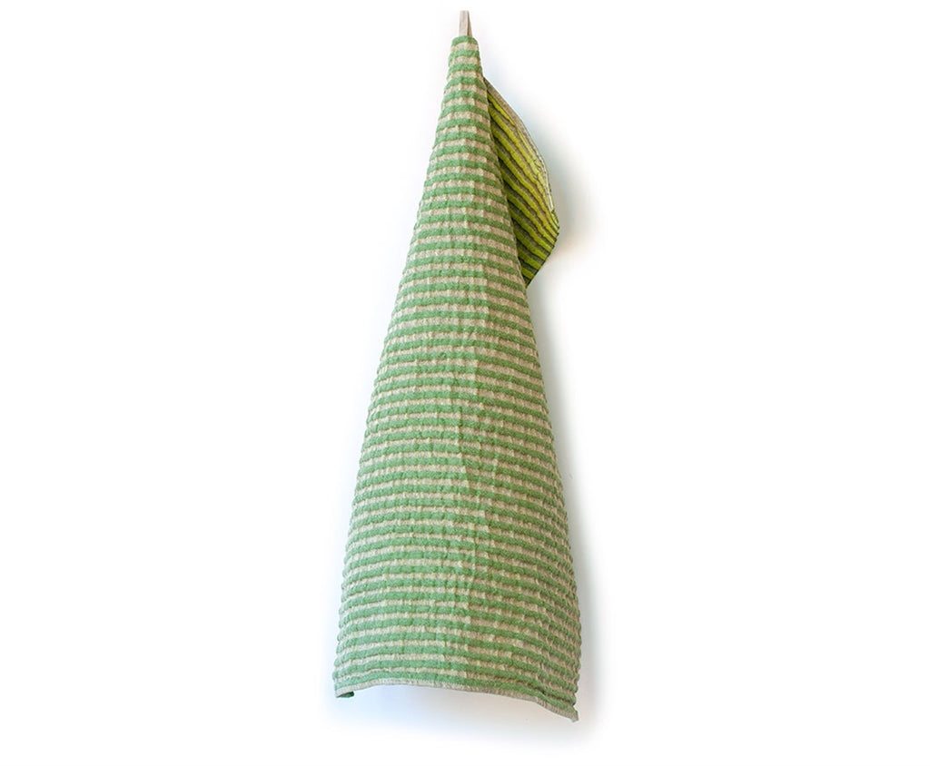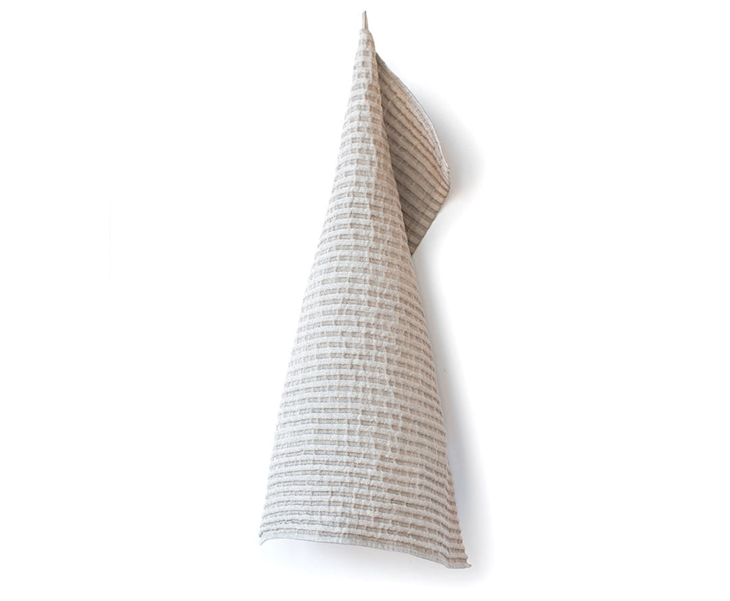 Storm is a hand and bath towel with attitude. When washed, waves form that create patterns and function. It quickly absorbs moisture, dries quickly and is easy to take with you everywhere.