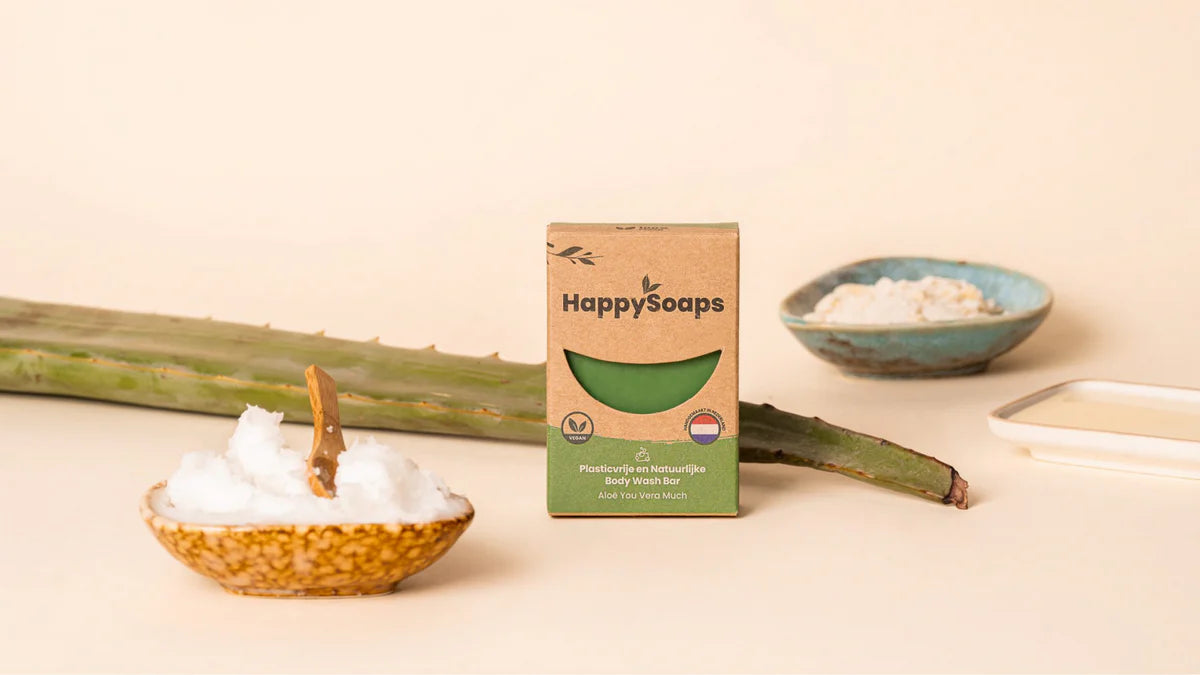 HappySoaps compresses the active ingredients from three to four plastic bottles into one hard bar of soap. This not only means that the soap takes up less space in your bathroom (and during shipping), but also that it lasts at least three times as long as a single bottle of soap. The result? A cheaper and more environmentally friendly alternative!
