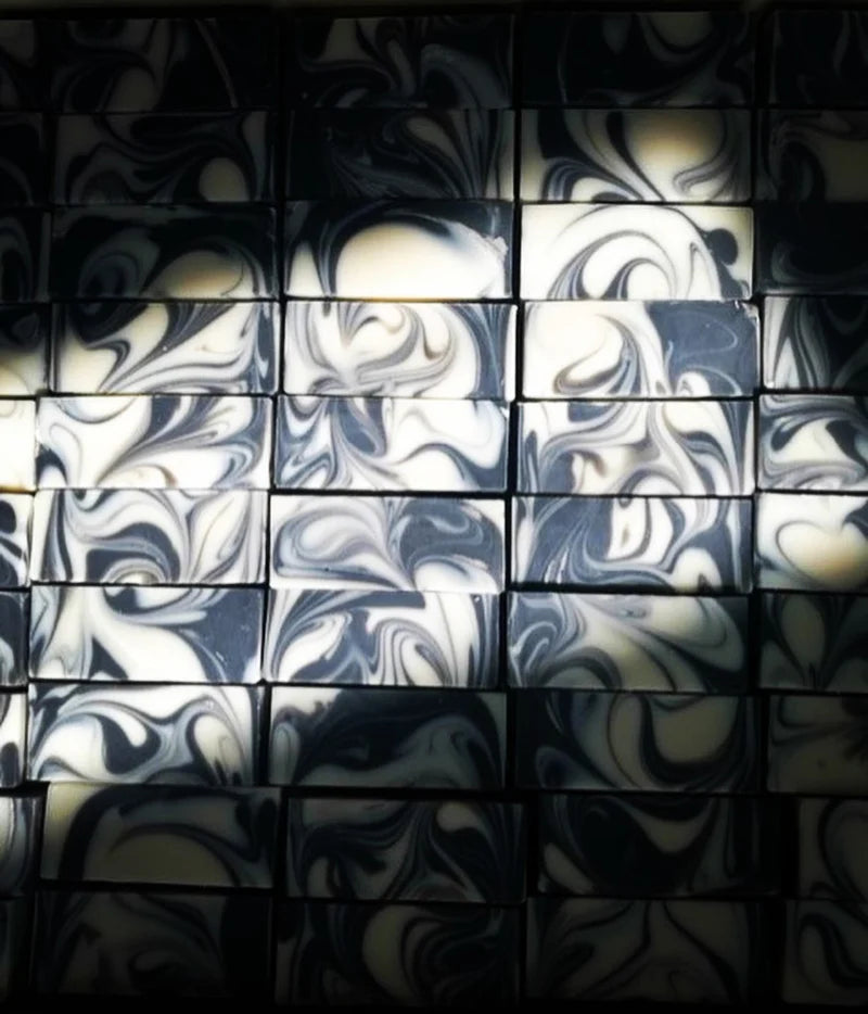 Activated charcoal, the black bars in the soap, attracts impurities and toxins from the skin like a magnet. Activated charcoal is often used in soaps and other skin products for problem skin. Charcoal is all-natural and works by trapping toxins in its millions of tiny pores. (However, charcoal does not absorb toxins. Instead, it works through adsorption, which is the chemical reaction where elements bind to a surface.)