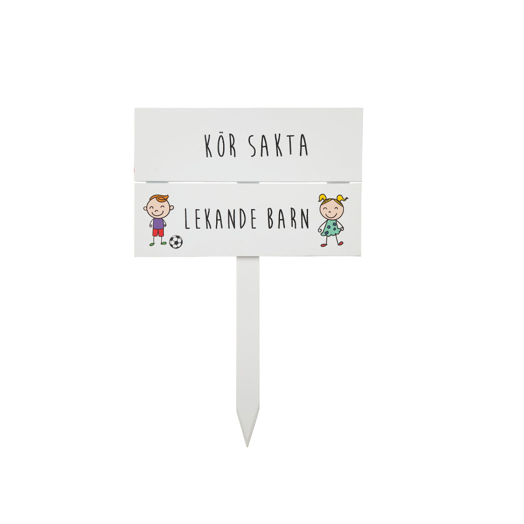 Show consideration with a clear and attractive sign in white painted wood with the text "Drive slowly - Children playing". Perfect to place at the property line or driveway to remind passersby to take it easy - there are children playing here.
