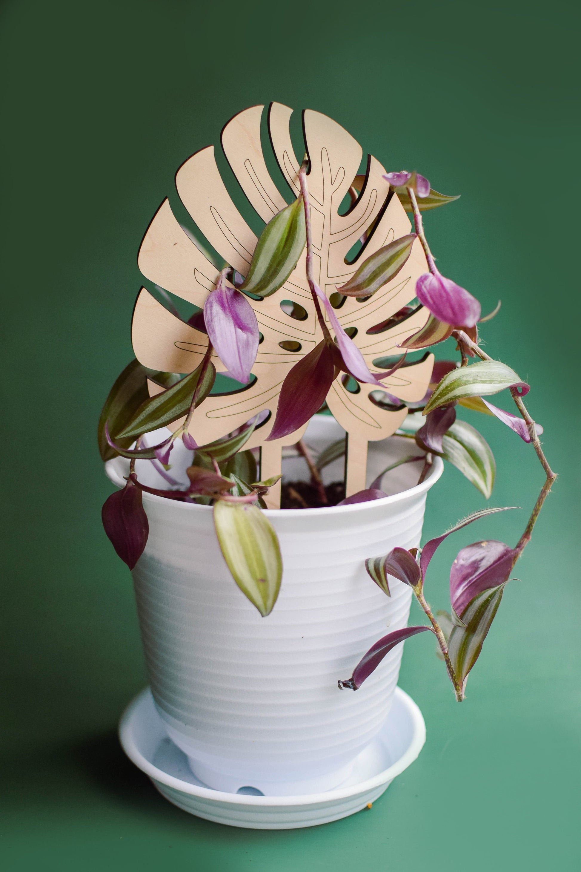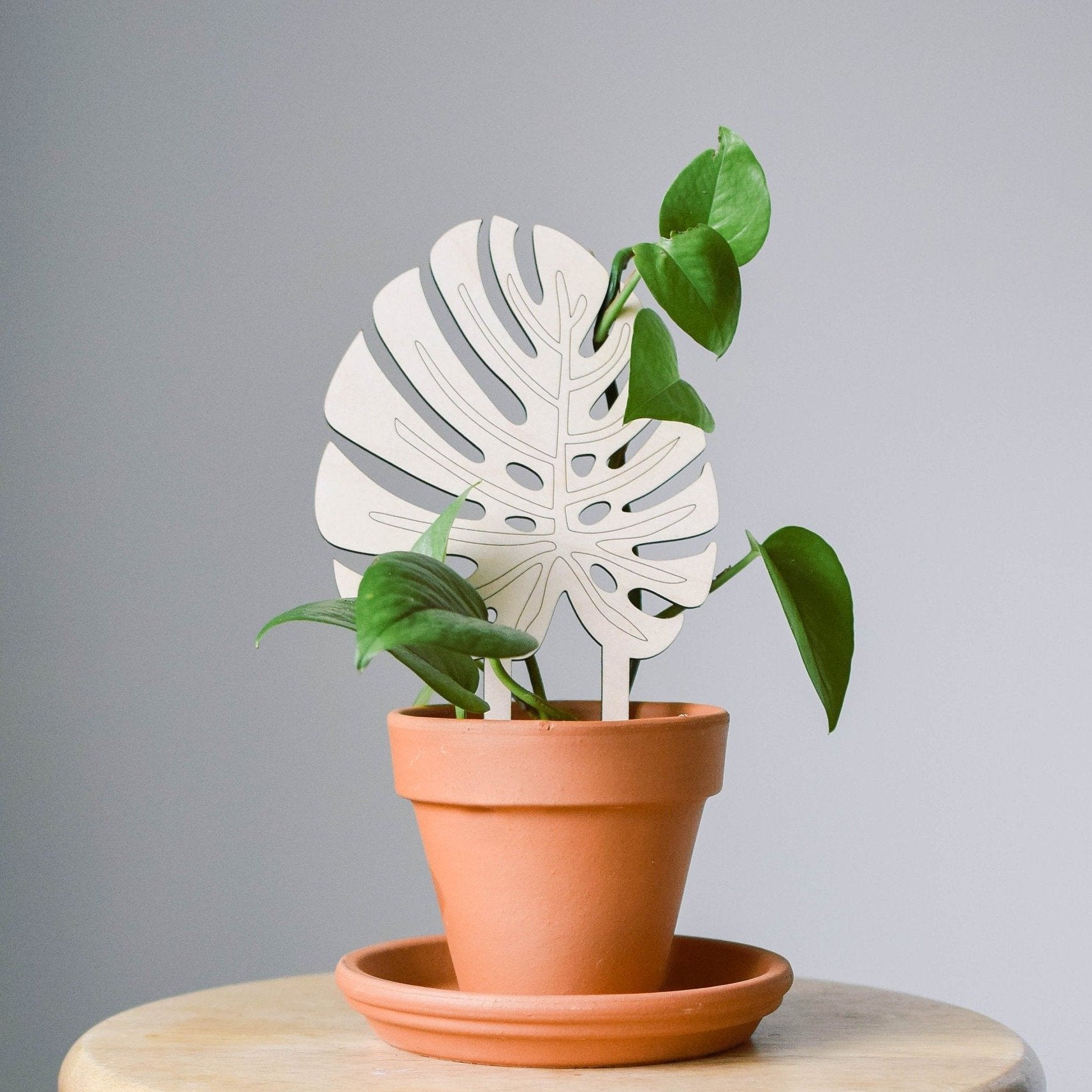 Wooden plant support, shaped like a leaf from the Monstera plant, which makes a nice interior detail.